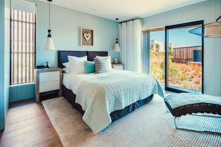 The Junior Suite is clad in floor-to ceiling windows that look over the golf course, hip lighting and soft, homely textures. Twin vanities, a standalone bathtub and walk-in rain shower are found in the bathroom, along with Matakana Botanicals; while the bedroom features a minibar, coffee machine and iPod docking station.